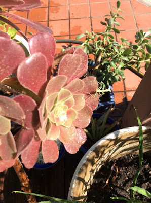 The unexpected hero of the day is the baby praying mantis thriving on the succulent plant. It came out in hiding after I spray the plant with cold water this morning. Here are a few shots of the baby praying mantis enjoying the fresh water spray.